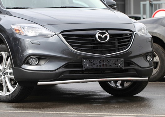Труба на бампер Mazda CX-9 защищает передний бампер автомобиля от различных механических повреждений при мелких ДТП и неудачных парковках, а также незаменима при езде по бездорожью. А кроме этого, труба на передний бампер Мазда CX-9 смотрится очень стильно и эффектно.