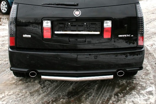 Труба на задний бампер Cadillac SRX защищает задний бампер автомобиля от различных механических повреждений при столкновениях на дороге и неудачных парковках. А кроме этого, защита заднего бампера для Кадиллак SRX — это дополнительная деталь тюнинга.