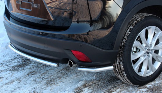 Защита заднего бампера для Mazda CX-5 – это защитные уголки на бампер из нержавеющей стали диаметром 42 мм.