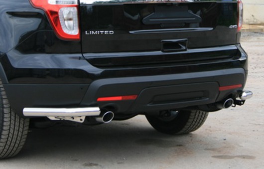 Защита заднего бампера уголки предназначена для автомобилей Ford Explorer от 2011 г.в. Вам не придется подгонять защиту под размеры бампера вашего авто. И с монтажом проблем не возникнет: установка защиты заднего бампера производится в штатные отверстия, а значит, необходимость сверлить кузов отпадает.
