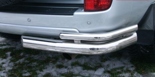 Защита заднего бампера для Toyota LC 120 Prado – это защитный уголок (правый, 1 шт.) на бампер из нержавеющей стали диаметром 76 мм.