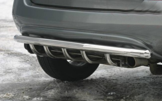 Защита заднего бампера для Nissan Murano – это труба на бампер с нижней защитой из нержавеющей стали диаметром 60 мм.
