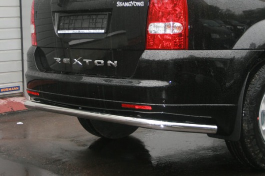 Защита заднего бампера труба предназначена для автомобилей SsangYong Rexton от 2007 г.в. Вам не придется подгонять защиту под размеры бампера вашего авто. И с монтажом проблем не возникнет: установка защиты заднего бампера производится в штатные отверстия, а значит, необходимость сверлить кузов отпадает.