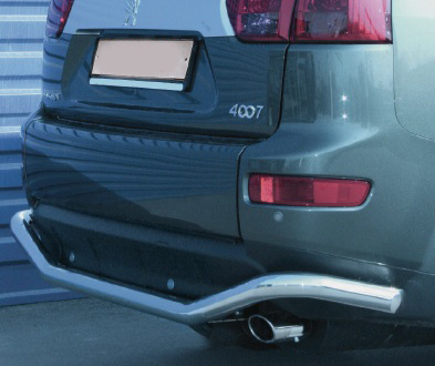 Защита заднего бампера труба предназначена для автомобилей Peugeot 4007 от 2007 г.в. Вам не придется подгонять защиту под размеры бампера вашего авто. И с монтажом проблем не возникнет: установка защиты заднего бампера производится в штатные отверстия, а значит, необходимость сверлить кузов отпадает.