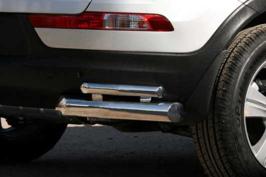 Защита заднего бампера для Kia Sportage – это двойные защитные уголки на бампер из нержавеющей стали диаметром 76/42 мм.