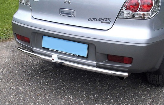 Труба на задний бампер Mitsubishi Outlander защищает задний бампер автомобиля от различных механических повреждений при столкновениях на дороге и неудачных парковках. А кроме этого, защита заднего бампера для Митсубиши Аутлендер — это дополнительная деталь тюнинга.