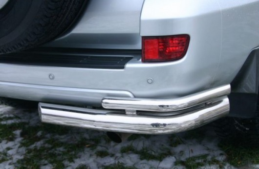 Защита заднего бампера для Mitsubishi L200 – это двойные защитные уголки на бампер из нержавеющей стали диаметром 76/42 мм.