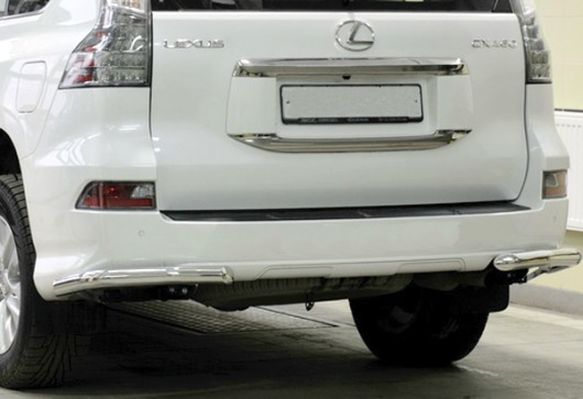 Уголки на задний бампер Lexus GX460 защищают задний бампер автомобиля от различных механических повреждений при столкновениях на дороге и неудачных парковках. А кроме этого, защита заднего бампера для Лексус — это дополнительная деталь тюнинга.