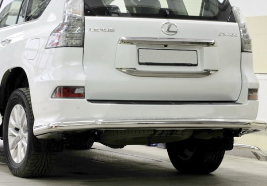 Защита заднего бампера труба предназначена для автомобилей Lexus GX460 от 2013 г.в. Вам не придется подгонять защиту под размеры бампера вашего авто. И с монтажом проблем не возникнет: установка защиты заднего бампера производится в штатные отверстия, а значит, необходимость сверлить кузов отпадает.