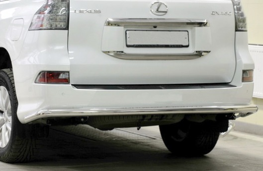 Защита заднего бампера труба предназначена для автомобилей Lexus GX460 от 2013 г.в. Вам не придется подгонять защиту под размеры бампера вашего авто. И с монтажом проблем не возникнет: установка защиты заднего бампера производится в штатные отверстия, а значит, необходимость сверлить кузов отпадает.