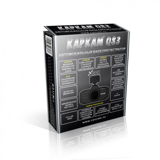 КарКам QS3 — это автомобильный регистратор с большим LCD дисплеем 2,7 дюйма и GPS модулем. Отличается высоким качеством видеосъемки Full HD, а также широкими возможностями. Так, видеорегистратор КарКам QS3 оснащен внутренней памятью 1Гб, встроенным G-сенсором, микрофоном и динамиком. Кроме того, вы можете вручную «защищать» любые важные файлы, что придает большую надежность! Но обо всем поподробнее.