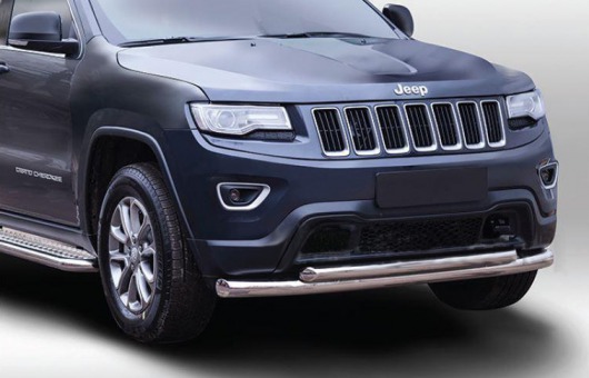 Защита переднего бампера для Jeep Grand Cherokee – это двойная труба на бампер из нержавеющей стали диаметром 76/60 мм.
