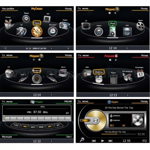 Штатная голова сделана на базе двухъядерного процессора частотой 1 Ггц семейства ARM Cortex с очень высокой производительностью. На ШГУ MyDean 1041-2 устанавливается операционная система WinCE 6.0 с полностью русифицированным меню. Сенсорный дисплей диагональю 7 дюймов, с разрешением 800х480 и высокой контрастностью позволяет отлично просматривать фото и видео всех основных форматов, включая видео высокой чёткости HD. Также Вы можете просматривать эфирное телевидение, для этого в штатную голову встроен аналоговый ТВ-тюнер.