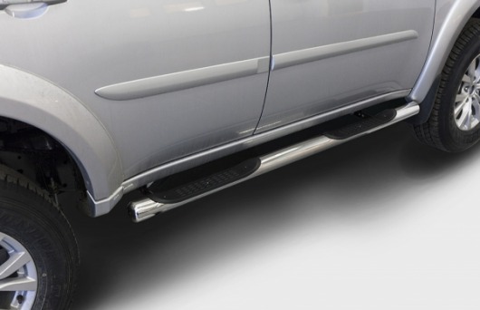 Боковые пороги-подножки с проступями сделаны специально для автомобилей Mitsubishi Pajero Sport от 2013 г.в., поэтому устанавливаются достаточно просто и без повреждений корпуса. Помимо этого, стальные пороги-трубы для Митсубиси Паджеро Спорт смотрятся очень стильно и эффектно. Они добавят вашему авто еще больше солидности и внушительности.