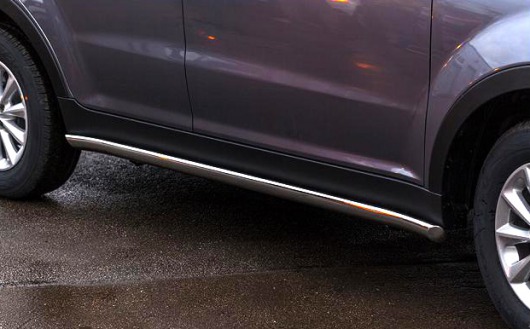 Пороги на SsangYong Actyon – это боковые подножки в виде овальной трубы из нержавеющей стали диаметром 75х42 мм, которые позволяют более комфортно входить и выходить из салона автомобиля. Подножки SsangYong Actyon очень прочные, надежные и долговечные: они не боятся коррозии, сколов и царапин и выдерживают большие нагрузки.