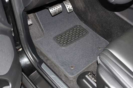 Изготовлены из качественного материала. Текстильные автомобильные коврики для салона Джип Чероки произведены из высококачественного материала, который держит форму и не пачкает обувь. К тому же, этот материал очень прочный (его, к примеру, не получится проткнуть каблуком).