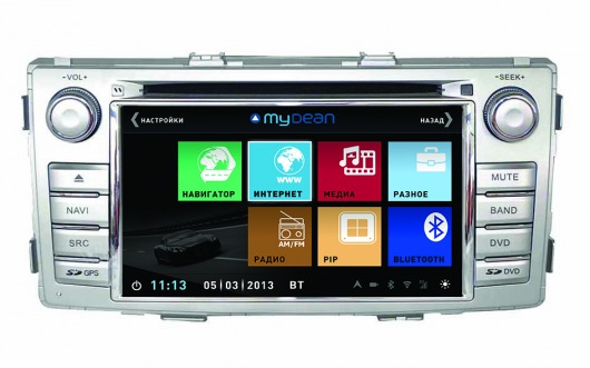 Штатная магнитола MyDean 1035 — мультимедийное устройство, устанавливаемое в штатное место, не изменяющее дизайн салона и специально предназначенное для автомобилей Toyota Hilux. Устройство устанавливается в штатное место, как и предустановленная аудиосистема, однако обладает несравнимо большим набором функций.
