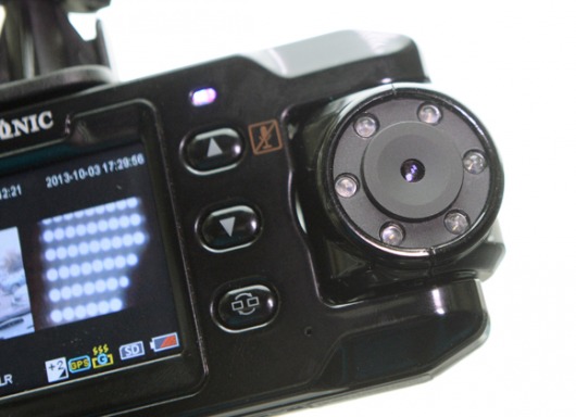 Новая модель автомобильного видеорегистратора Cansonic FDV-707 GPS оснащена сразу двумя камерами, которые удобно расположены по обе стороны корпуса. Панорамная камера имеет угол обзора 140 градусов, а это — возможность съемки до 4-х полос движения! Камера-"бинокль" с улучшенной линзой позволяет четко рассмотреть номерные знаки на расстоянии до тридцати метров.