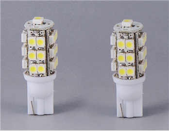 Свет от лампы прекрасно сочетается с ксеноновым светом. Такой лампой Вы сможете сменить, наконец, надоевший жёлтый свет. Каждая лампа состоит из 25 ярких SMD чипов. В каждом из них – 3 кристалла. Особенное расположение чипов даёт возможность осветить полностью весь габарит.