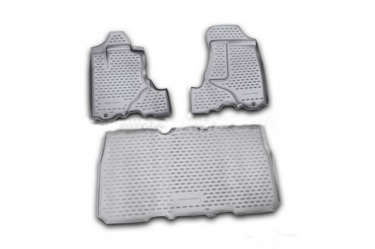 Полиуретановые коврики для автомобиля гладкие, приятные и не пропускают влагу. Серый цвет универсален и подойдет любому авто. В комплекте вы получите 3 коврика в салон автомобиля.