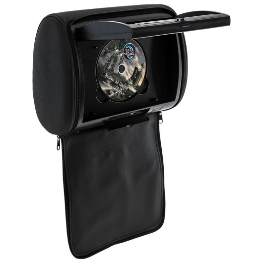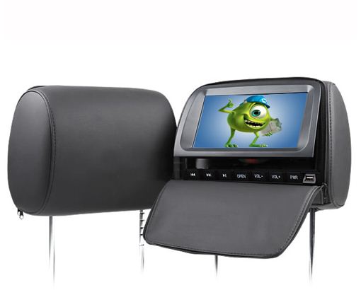 Обивка автомобильных подголовников с мониторами и DVD изготовлена из искусственной кожи высокого качества черного, серого или бежевого цвета. Нужный вам цвет выберите в поле над ценой.