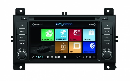 Штатная голова сделана на базе двухъядерного процессора частотой 1 Ггц семейства ARM Cortex с очень высокой производительностью. На ШГУ MyDean 3263 устанавливается операционная система WinCE 6.0 с полностью русифицированным меню. Сенсорный дисплей диагональю 6.2", с разрешением 800х480 и высокой контрастностью позволяет отлично просматривать фото и видео всех основных форматов, включая видео высокой чёткости HD. Также Вы можете просматривать эфирное телевидение, для этого в штатную голову встроен аналоговый ТВ-тюнер.