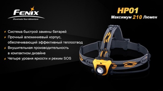 Налобный фонарь Fenix HP01 – новинка на рынке, очень прочный, яркий и лёгкий фонарик, который придётся по вкусу и туристам, и велосипедистам, и спелеологам, и многим другим! Отличная конструкция обеспечивают фонарику световой луч длиной более чем в 100 метров, время работы свыше 120 часов и нечувствительность даже к сильным ударам!