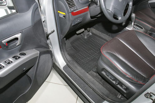 • Изготовлены из качественного материала. Полиуретановые автомобильные коврики для салона Хендай Санта Фе произведены из высококачественного материала, который держит форму и не пачкает обувь. К тому же, этот материал очень прочный (его, к примеру, не получится проткнуть каблуком).