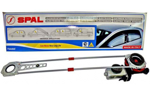 Стеклоподъемники Spal De Lux New производятся в Италии и предназначены для установки в передние и задние двери любых автомобилей. Их двигатели защищены от перегрузки благодаря встроенному термопредохранителю. В комплект поставки входят кнопки управления, переходники и аварийная ручка для поворота.