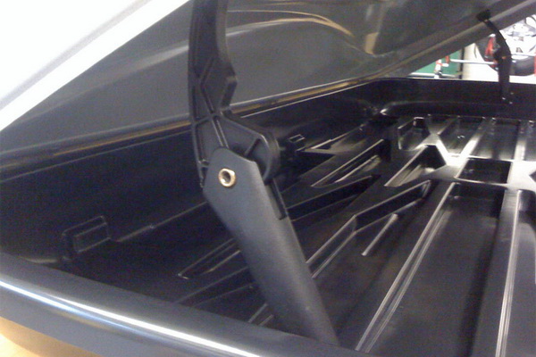 Багаж внутри бокса удерживается дополнительными ремнями, которые входят в комплект. Для более удобного открытия/закрытия крышки предусмотрены прочные газовые упоры. Бокс имеет боковое правостороннее открытие.