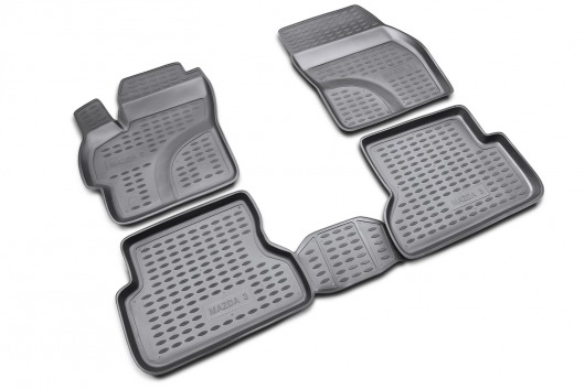Черные автоковрики в салон Mazda 3 не только улучшат внешний вид салона вашего автомобиля, но и надежно уберегут его от пыли, грязи и сырости, а значит, защитят кузов от коррозии. Полиуретановые автоковрики разработаны специально для автомобилей Mazda 3 2003-2009 г.в.