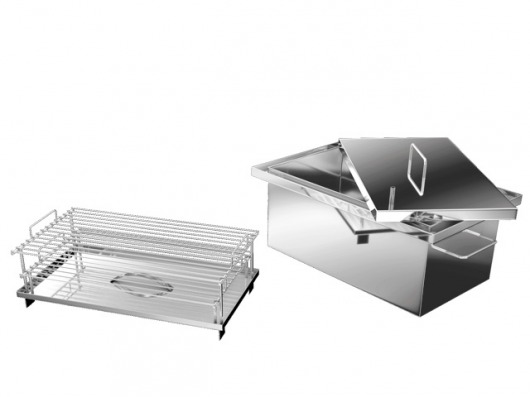 Все элементы коптильни изготовлены из высококачественной пищевой нержавеющей стали (толщина стенок — 1,5 мм). Такая коптильня из нержавейки не боится коррозии и прослужит вам более 10 лет — и это при том, что вы будете часто ее использовать. Кроме того, такую коптильню легко чистить и мыть после использования.