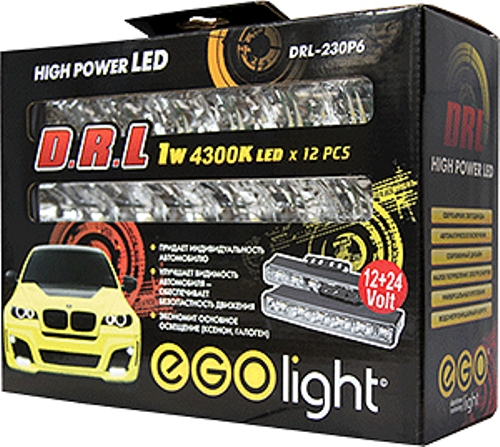 Дневные ходовые огни EGO Light DRL-230P6 при правильном подключении способны включаться автоматически вместе с запуском двигателя. Помимо этого, они автоматически отключаются при выключении габаритного освещения автомобиля или же при выключении зажигания. Прямое подключение к аккумулятору посредством реле исключает возможность ошибок бортового компьютера.
