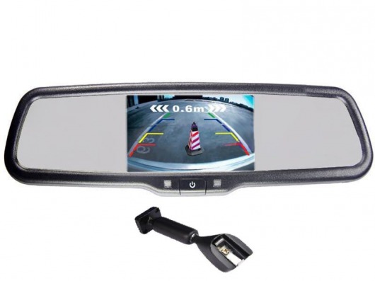 Салонное зеркало снабжено большим экраном, который автоматически включается, если вы даёте задний ход. Если подключить к зеркалу с монитором камеру заднего вида, вы увидите на экране всё, что она снимает.