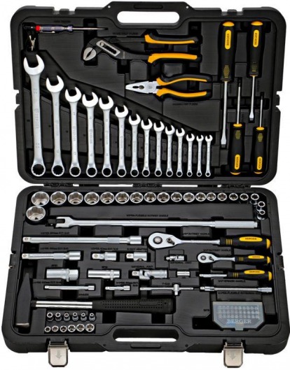 BERGER BG102-1214 — это набор инструментов в кейсе, в котором находится 102 предмета: от качественных торцевых головок до высокопрочной и усиленной трещотки (всю комплектацию вы можете посмотреть в «Характеристиках», во вкладке справа).