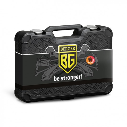 Весь набор инструментов BERGER BG042-12 находится в оригинальном и стильном кейсе. Чемодан изготовлен из высокотехнологичного пластика с добавлением резины. Такая конструкция делает его очень ударопрочным и стойким к низким температурам.