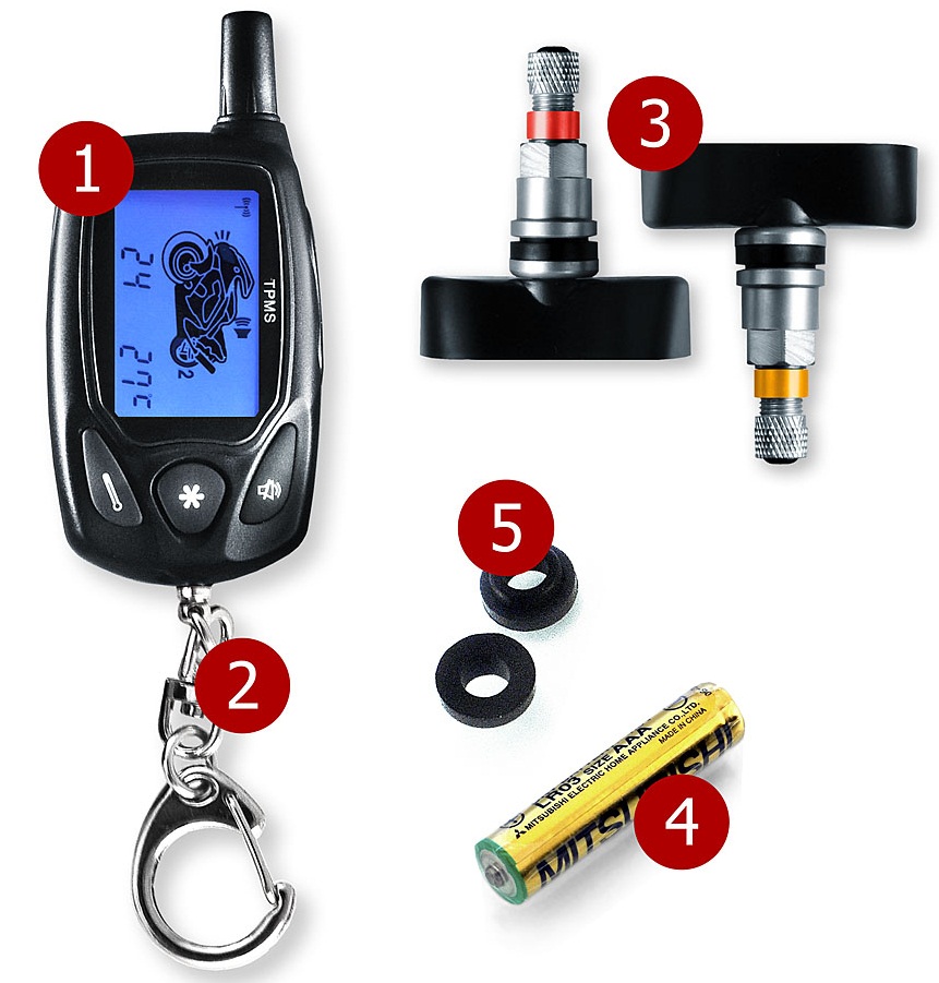 • Информация о состоянии шин выводится на монитор-брелок, который легко крепится в удобное для вас место. Монохромный дисплей с подсветкой отображает данные о давлении в шинах.