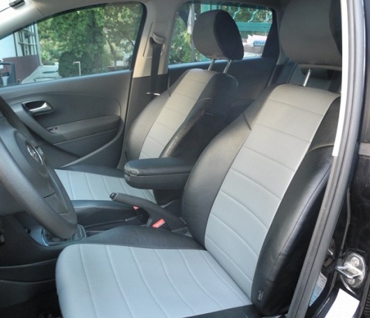 Вопросы и отзывы про Чехлы автомобильные для Volkswagen Polo V, седан, от 09 г.в. (черно-светло-серые, экокожа)