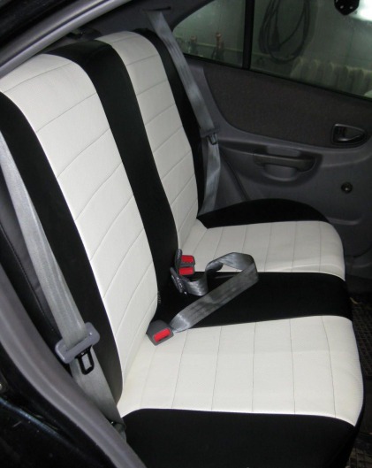 Вопросы и отзывы про Чехлы автомобильные для Hyundai Accent, седан от 08 г.в. (черно-белые, экокожа)