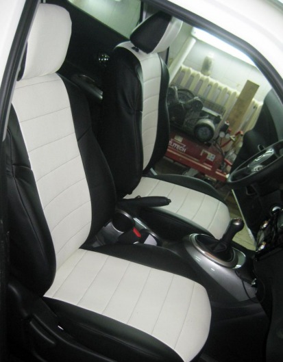 Чехлы автомобильные для Nissan Navara III (черно-белые, экокожа)