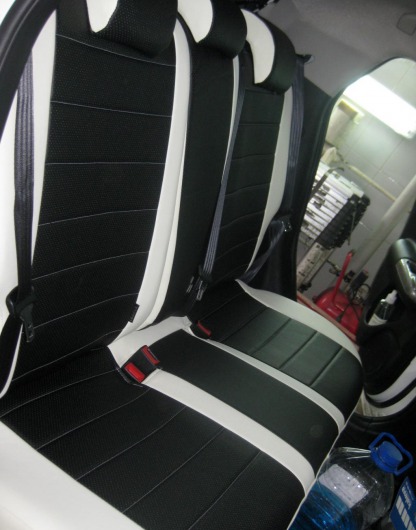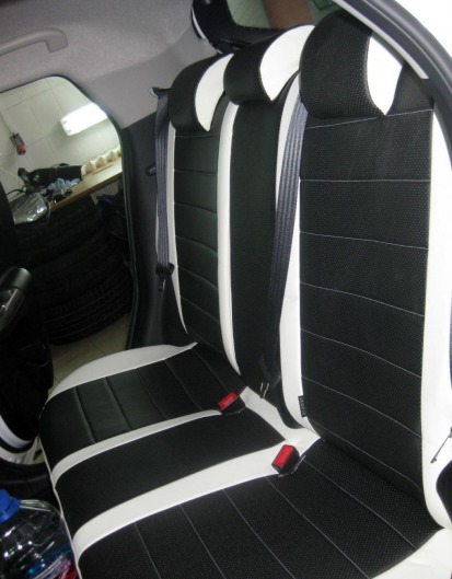 Вопросы и отзывы про Чехлы автомобильные для Nissan Note (бело-черные, экокожа)