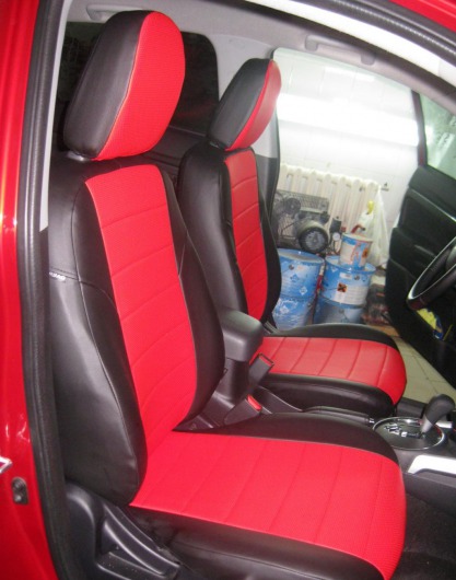 Вопросы и отзывы про Чехлы автомобильные для Mitsubishi L-200 от 06 г.в. (черно-красные, экокожа)