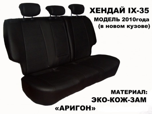 Оригинальные чехлы для Хендай ix35 (от 2010 г.в.) сделаны из экокожи Аригон —  экологически чистого и сертифицированного материала. Авточехлы из экокожи не вызывают аллергию, устойчивы к перепадам температур и не пропускают жидкость.