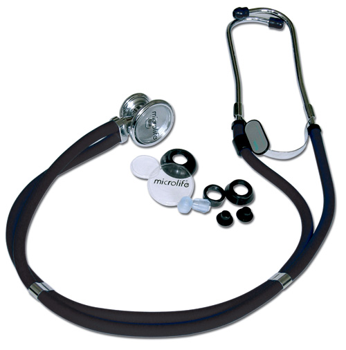 Стетофонендоскоп Раппопорта Microlife ST-77 с 2-сторонней акустической головкой предназначен для прослушивания тонов сердца, легких и других внутренних органов. Отличается превосходными акустическими характеристиками. В комплекте есть 3 сменных воронки разного размера, благодаря чему стетоскоп подойдет для обследования пациентов любого возраста, в том числе и для новорожденных. Этот стетоскоп можно также использовать для прослушивания тонов Короткова при измерении артериального давления механическим тонометром.