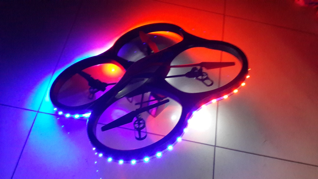 • Благодаря защитному корпусу данная модель квадрокоптера на пульте ДУ будет радовать вас очень долго. А яркая светодиодная подсветка сделает ваш полет ночью более зрелищным.