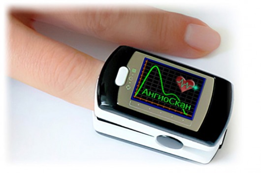 Сканер сосудов Ангиоскан-01П применяется в домашних условиях для персонального мониторинга сердца, Прибор обеспечивает измерение многих показателей, среди которых пульс, содержание в крови кислорода, эластичность сосудов и уровень стресса.