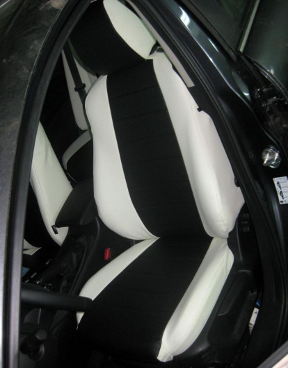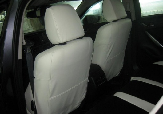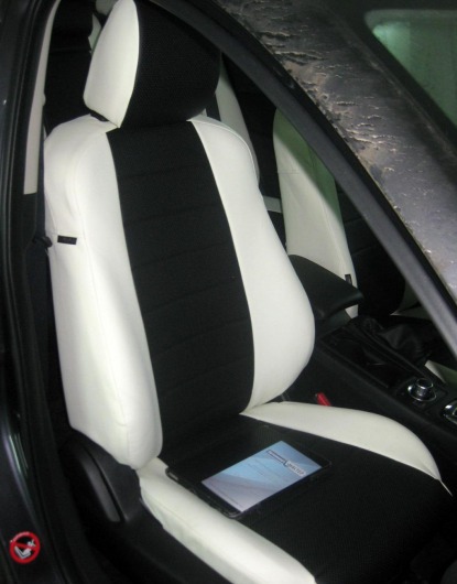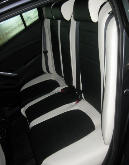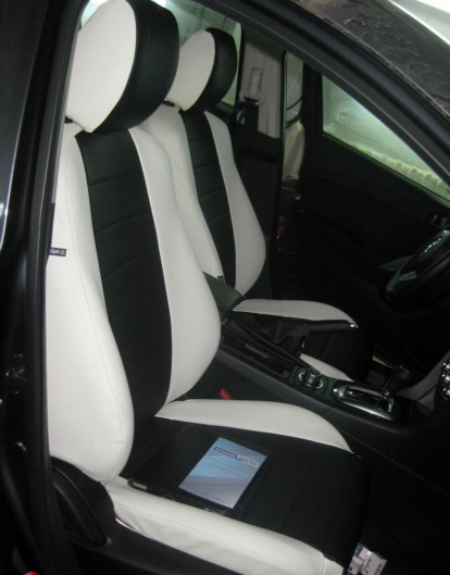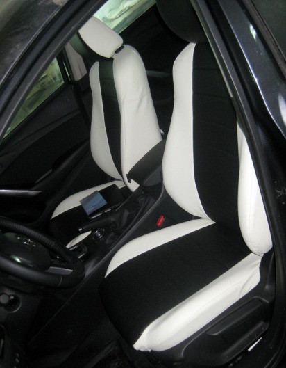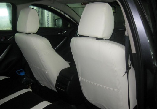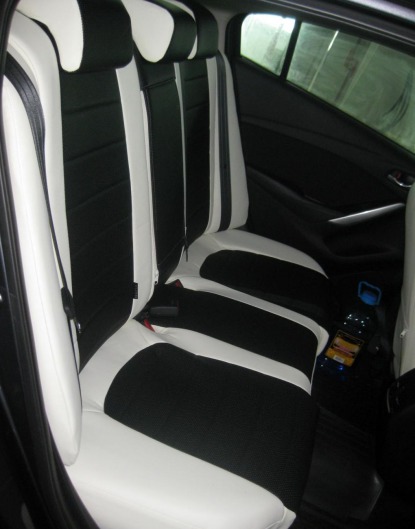 Вопросы и отзывы про Чехлы автомобильные для Mazda 6 от 13 г.в. (бело-черные, экокожа)