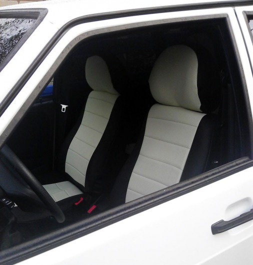 Вопросы и отзывы про Чехлы автомобильные для Lada 2108/09/99/14/15 (черно-белые, экокожа)