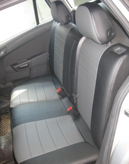 Вопросы и отзывы про Чехлы автомобильные для Opel Astra H седан/хэтчбек, 05-09 г.в. (черно-темно-серые, экокожа)