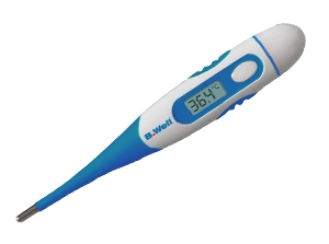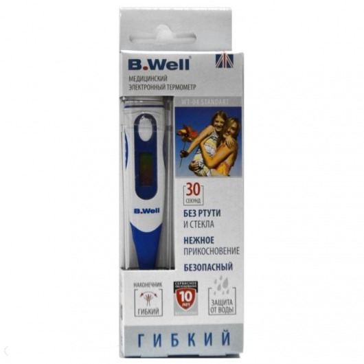 Недорогой электронный термометр B.Well WT-04 идеально подходит для всей семьи. Благодаря гибкому наконечнику и другим прорезиненным вставкам на корпусе, термометром приятно пользоваться. Он абсолютно безопасен, так как не содержит стекла и ртути.